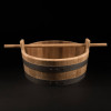 Les coulures noires que l'on voit sur ces photos apparaissent sur tous nos produits dont les cerclages sont en fer brut. Elles sont dûes à une réaction entre le fer brut et les tanins du chêne en présence d'eau. Elles sont très visibles lors des premières utilisations, puis tout ça se patine et s'uniformise et on ne les voit plus. Au besoin elles s'enlèvent très facilement en grattant avec un racloir (à défaut un bout de verre cassé).