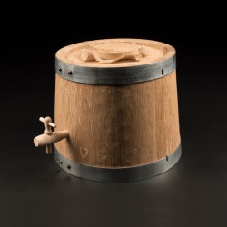 Le bois utilisé est du merrain non traité, le même que pour nos tonneaux. Ces vinaigriers 6 litres sont fabriqués avec les méthodes de tonnellerie traditionnelle. Ils ne sont ni paraffinés, ni vernis, ni collés.